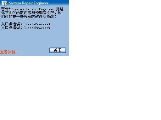 入口点错误:CreateProcessW (危险等级: 高, 被下面模块所HOOK: 0x00E8221D)