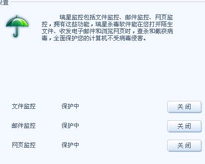 我的瑞星用的是30元包年的,这两天突然发现实时监控总是自动变成红伞,我尝试着再开启所有监控也没用,点禁用所有监控后再点开启所有监控也没用。