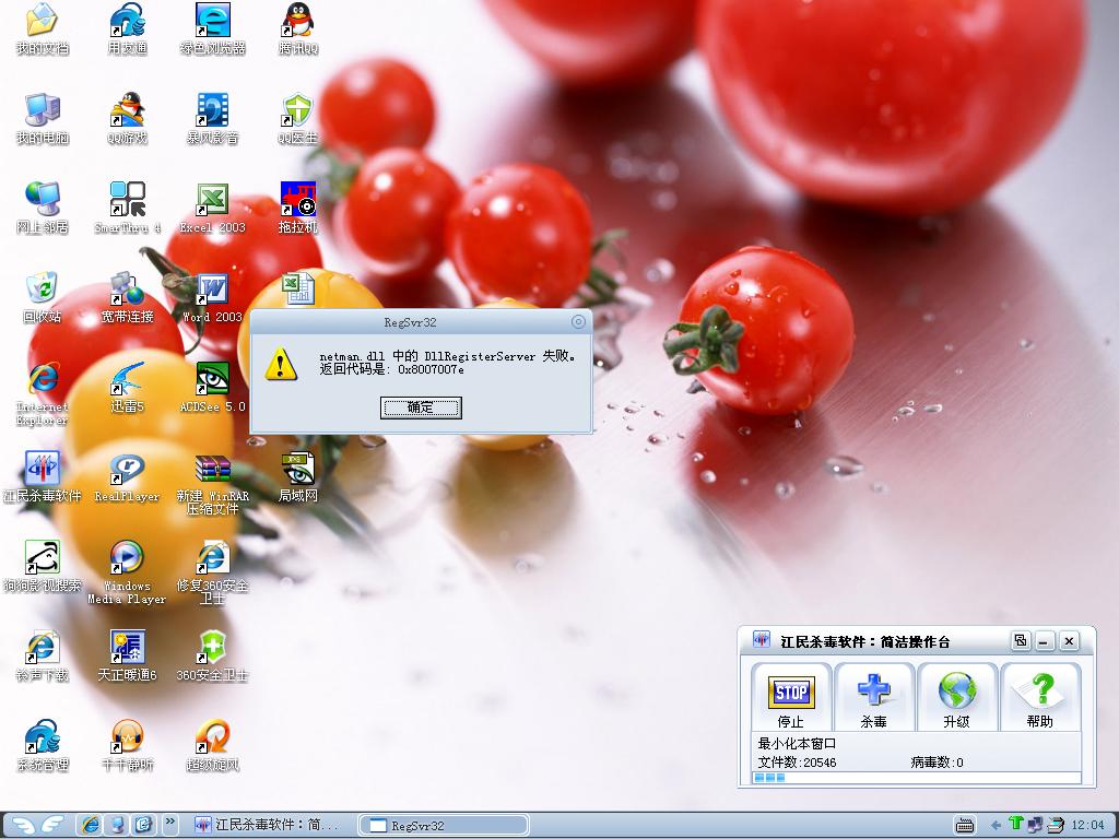 运行regsvr32 netman.dll失败