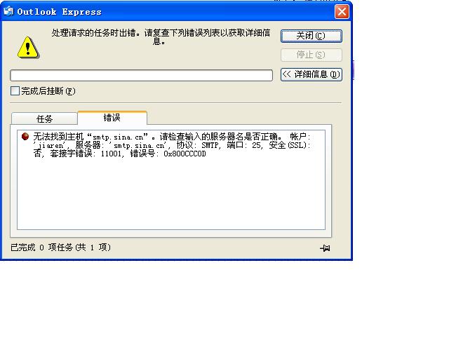 用OUTLOOK EXPRESS发邮件发不出去了.老提示错误.如图: