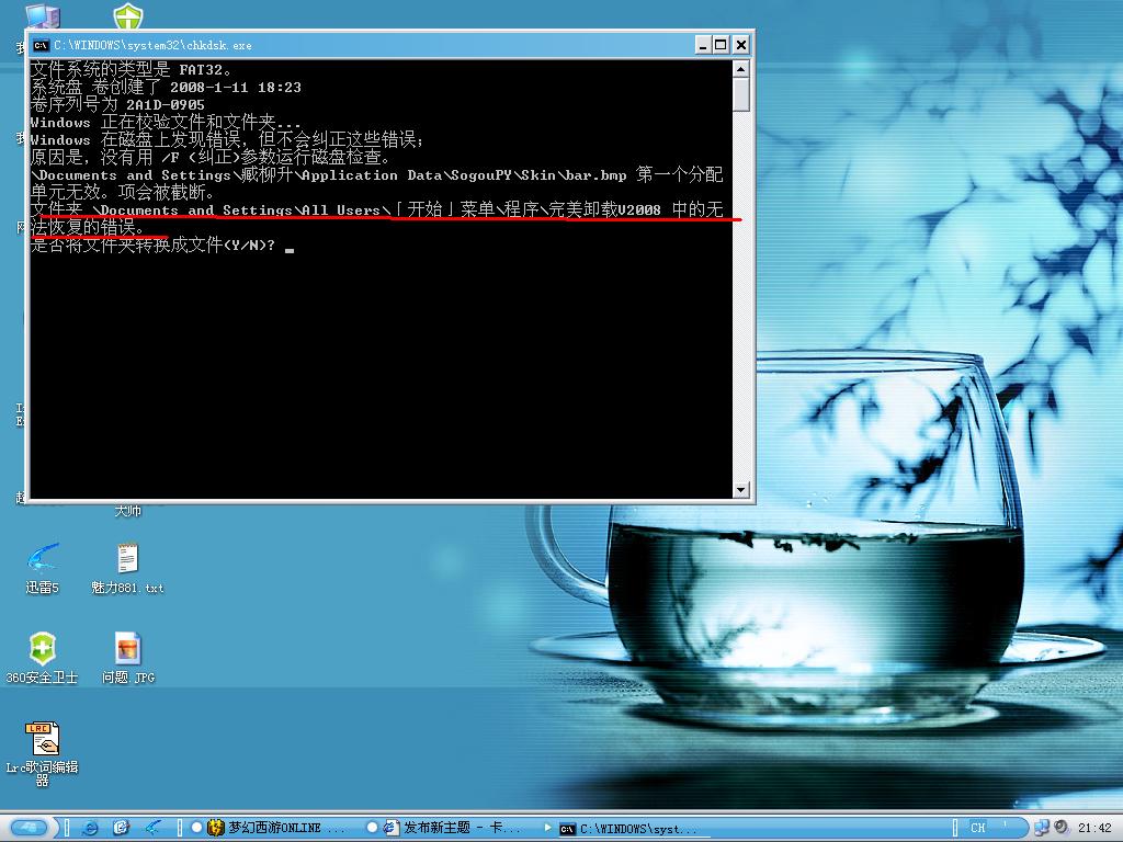 【原创】完美卸载2008系统报告说有无法修复的错误 详见贴图