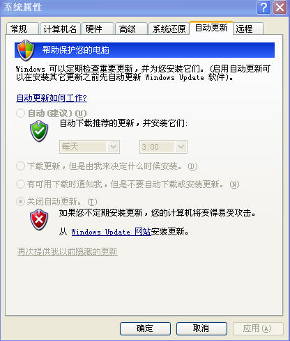 电脑中了毒,已基本杀干净,但自动更新功能已被禁用。查看服务中自动更新项显示的是"开启-自动"的,组策略中的自动更新服务也是开启的,“删除所有windows update功能”项是未配置。但自动更新的选择项始终灰色。如图