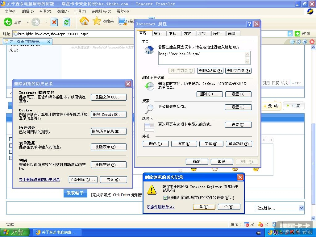 右键点我的IE,清空所有内容,然后你再安全模式下杀毒即可清除