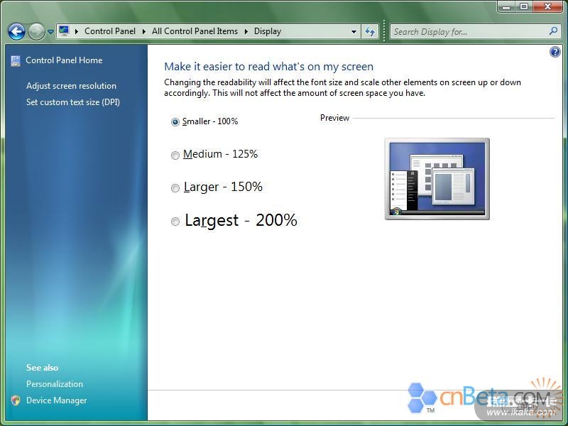7.控制面板里多了一些东西,比如 Recovery Center,调字体大小的 Display,Windows Sensors