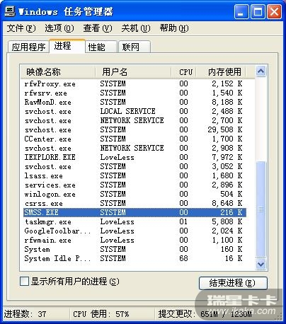 以下这张是我机子于2008年6月6日19:06截的任务管理器图