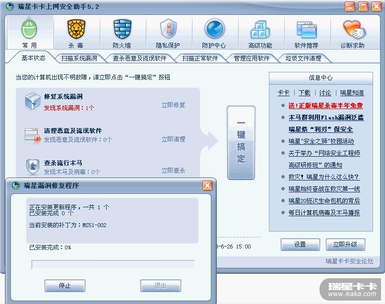 我的卡卡发展了漏洞,自动下载了MS51-002但是就是安装为0%请问什么问题谁有办法