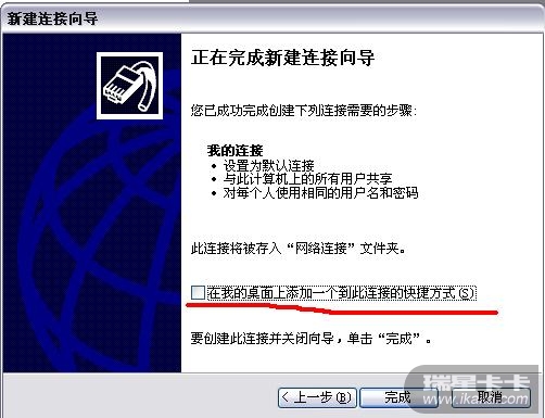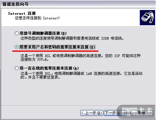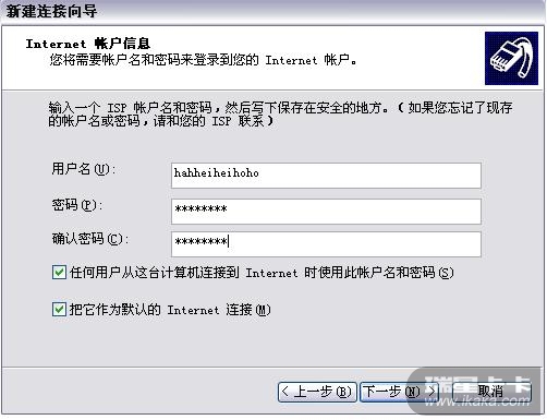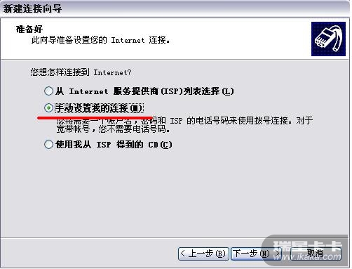 网上邻居--->查看网络连接-->创建一个新的连接-->连续按2次"下一步"-->选择"手动设置我的连接"-->继续下一步-->"要求用户名和密码的宽带连接来连接"-->输入ISP名称(比如"我的连接")-->输入用户名和密码-->完成!(如想把图标放到桌面上请在此处钩选上"在我的桌面上添加一个到此连接的快捷方式")