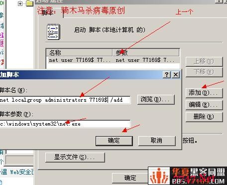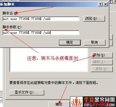 然后添加脚本这里的脚本名字就是 n e t u ser 77169 77169 /add