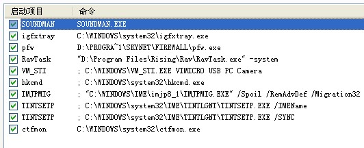igfxtray不知道是什么,还有soundman可以去掉。