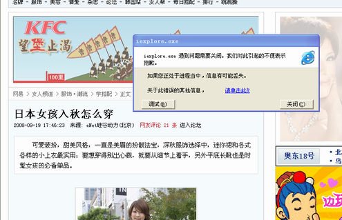谢谢大家。但是在卡卡里面IE是不用修复的,还有就是好像只是这一个网页有问题,在其他的比如起点、游戏等的网站上却没有问题。麻烦给解答下。