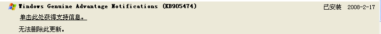 最后,在添加/删除程序中,找到了KB905474这个补丁...郁闷啊...而且发现 无法删除此更新.如下图