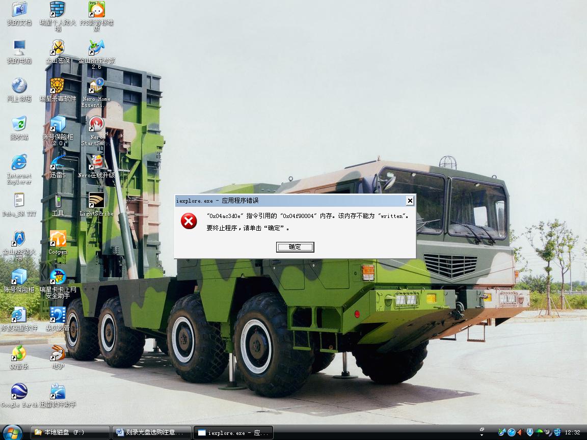 前一阵是上百度时出问题,今天进谷歌搜索NERO软件,点击关闭X退出时居然也出问题了。如下图弹出对话框:"0X04ac3d0e"指令引用的“0x04f90004”内存。该内存不能为written.,要终止该程序,请单击确定。请问是否是病毒?还是系统本身的问题。