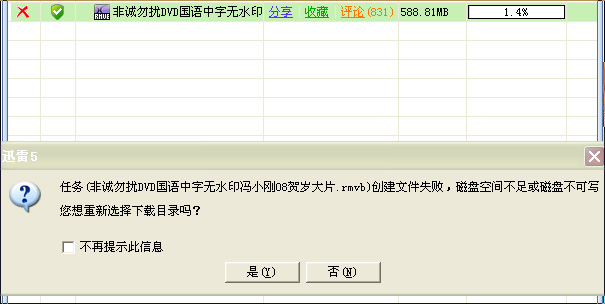 求助:迅雷5创建文件失败