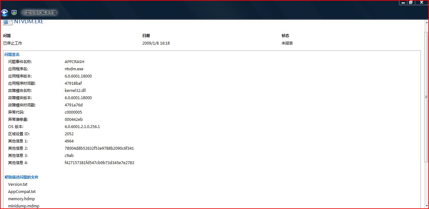 回复:vista sp1 ntvdm.exe工作异常,停止工作