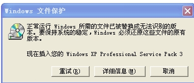 找张原版XP sp3安装光盘,放入光驱,运行sfc /scannow
