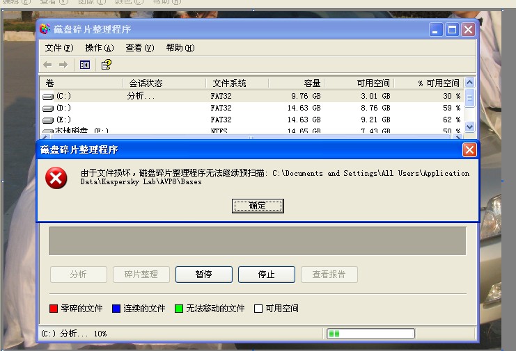 我的“磁盘碎片整理程序”出了问题,请大家给个答案,故障如图