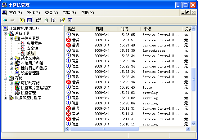 这就是系统EVT日志,来源于Service Control Manager的错误报告通常是某个系统服务无法正常启动,双击打开可以查看