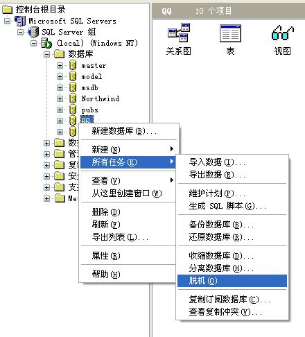 ps:还原的时候将数据库文件和日志文件复制到适当的位置,右键点击数据库,选“所有任务”——附加数据库,就可以了。