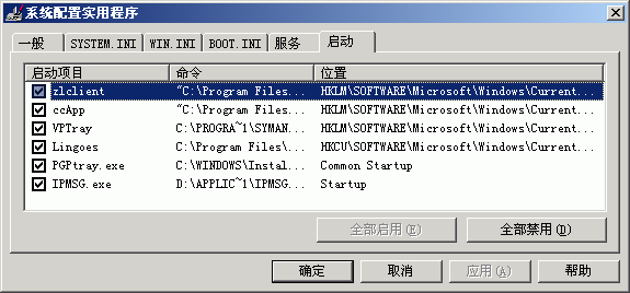 在系统配置那里只保留输入法和安软进程就可以了。其他就别管了