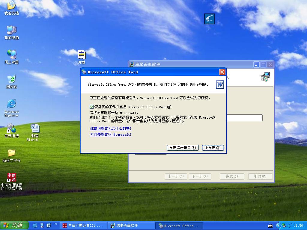 没看明白你在干啥嘛,后面瑞星在安装,你又在弄office,一个一个弄不行吗?
