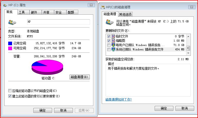今天我在使用C盘的磁盘清理时:出现一下情况: