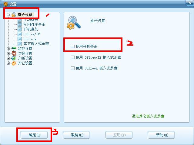 开机查杀是打开瑞星杀毒软件-设置-详细设置-定制任务。