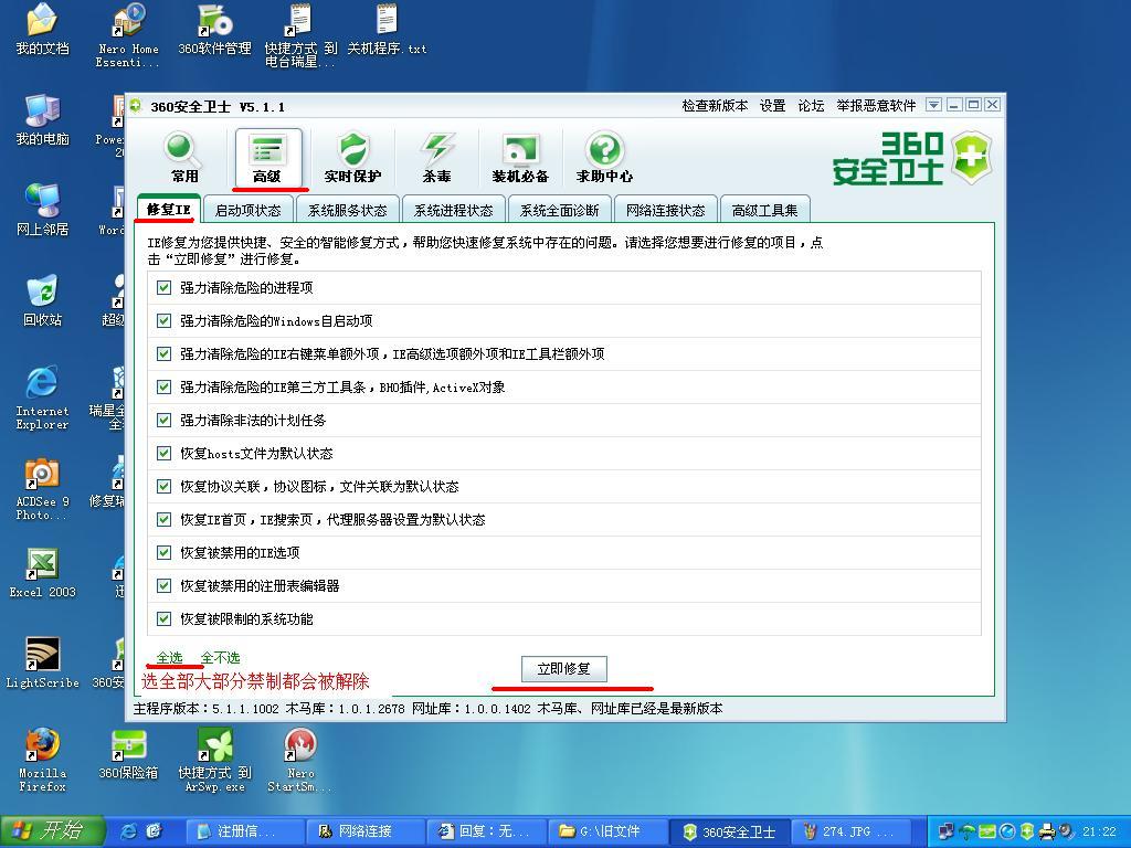 扫描恶意插件,并修复IE。