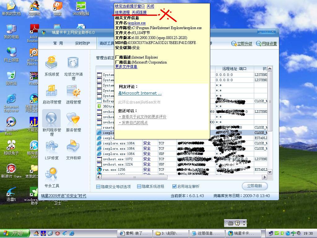 我没有装瑞星的防护墙 所以看不到网络链接