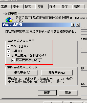 右键点击ie图标,选择"属性",再弹出的 "Internet属性" 中打开 '内容' 选项卡, 然后检查 自动完成 的设置中是否 没有 勾选 "自动完成表单上的用户名和密码"