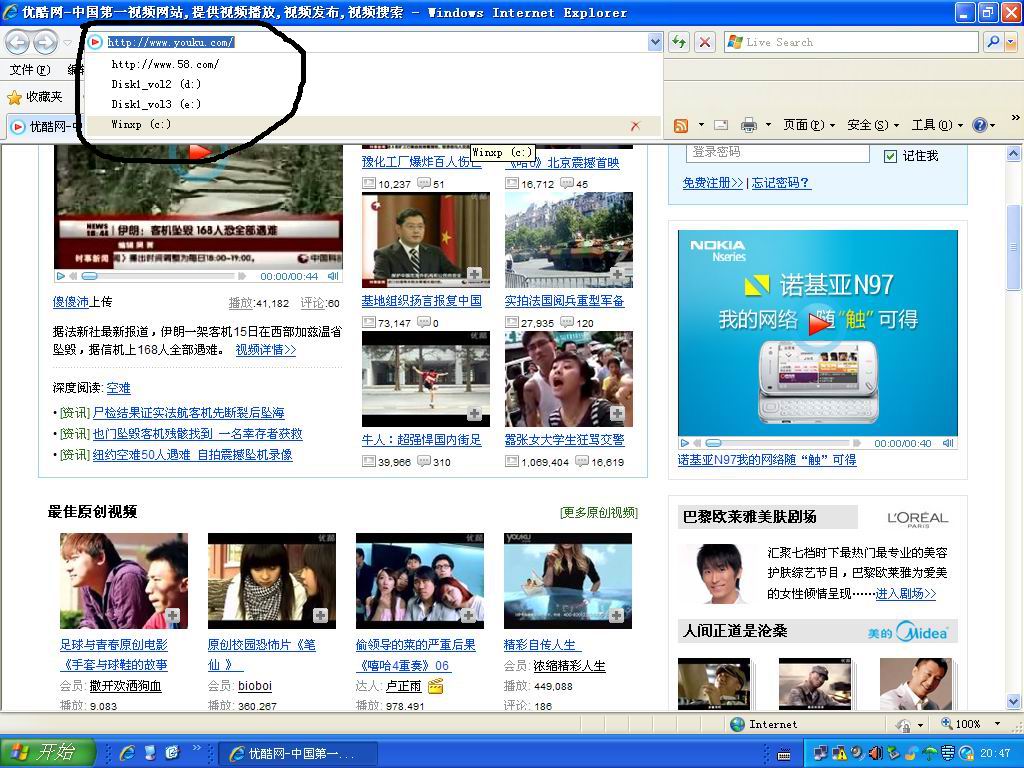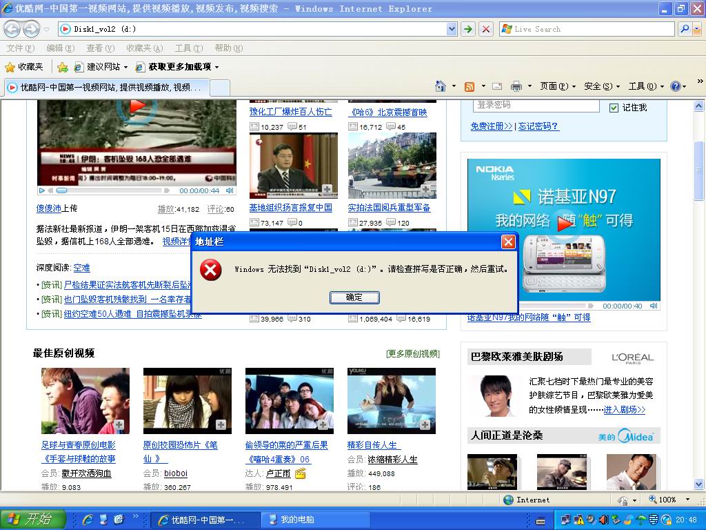 用备份还原系统后IE地址栏出现盘符图标,我记得好像不应该出现盘符图标,点击出现错误警告,请问应该出现盘符图标吗?