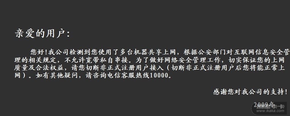 各位大虾,想请大家帮帮忙,我们在学校用的是top空间卡上网的,为了省点钱,我们就是几个人共用一根网线,然后用路由器分网。但是黑的要死的中国电信就用封路由的形式不让我们上网,现在只能够上一下QQ,别的网页都是进不了的。很烦很烦!不知道哪位有能够破解的方法?在这里谢谢你们
