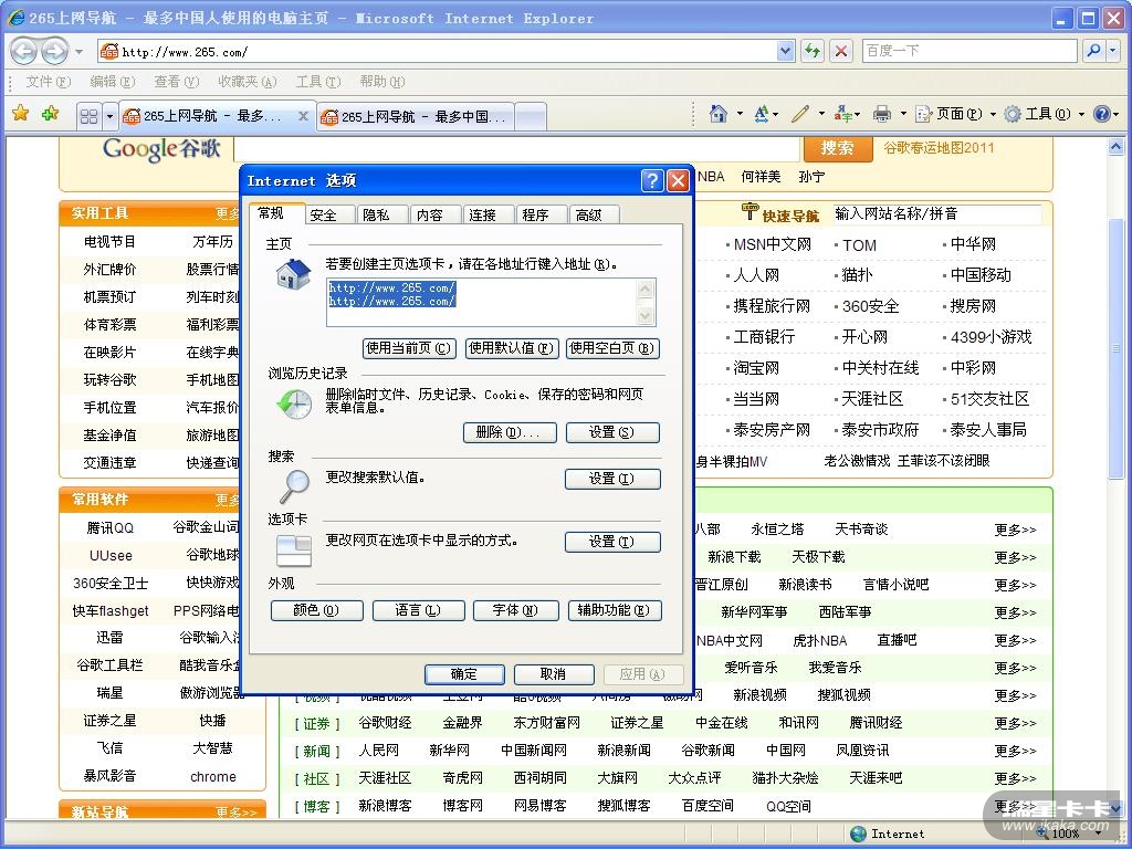 可以使用卡卡上网助手修复IE,锁定一下主页。