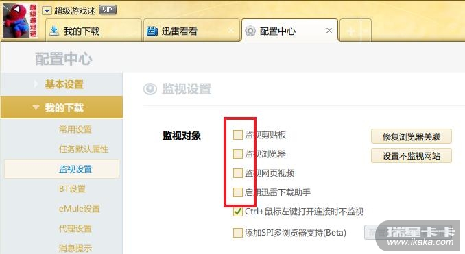 打开迅雷7主界面,下面红框处的选项按照我的取消勾选后,再看看: