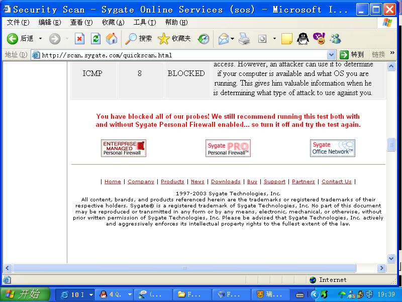 and without Sygate Personal Firewall enabled... so turn it off and try the test again