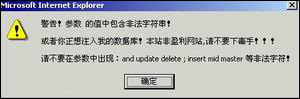 第一步:很多新手从网上下载SQL通用防注入系统的程序,在需要防范注入的页面头部用 来防止别人进行手动注入测试(如图1)。