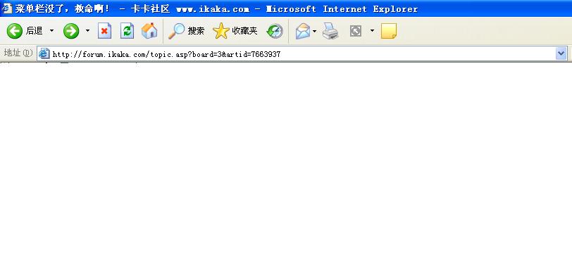 我现在打开我的电脑或者网页,原来有的“文件、编辑、查看、收藏、工具、帮助”都没了,就如图片,请各位帮帮我啊,连控制面板里面的文件夹选项都打不开了,急啊!谢谢各位高手了!