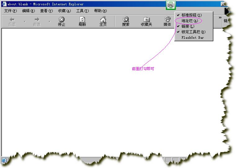 打开ie后在工具栏的空白处右键单击,选择地址栏前面打勾即可。
