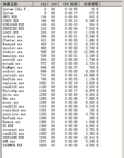 是这种情况,一般待机时,CPU使用正常,但一旦运行程序或者flash动画就会上升到100%!并很容易蓝屏,我的是2000系统,附上进程表,请高手指点,如何解决?