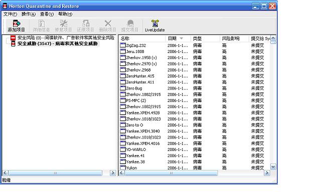 接着问题来了,在NIS2006中轻松处理的病毒在2005中却发现了不能删除的问题。最后在隔离区内进行的手工删除。