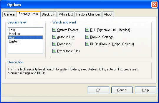 Guards system folders - Active Shield guards system folders and warns about any changes inside them , including copying , creating or deleting files. It will also try to restore deleted critical system files. This feature prevents a lot of trojans and spyware (even unknown) from being installed in your system.