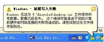 最近我的硬盘(F盘)老是出现“windows-延缓写入失败”的错误提示,删除回收站,保存文件到F盘都会,这是怎么回事啊~?