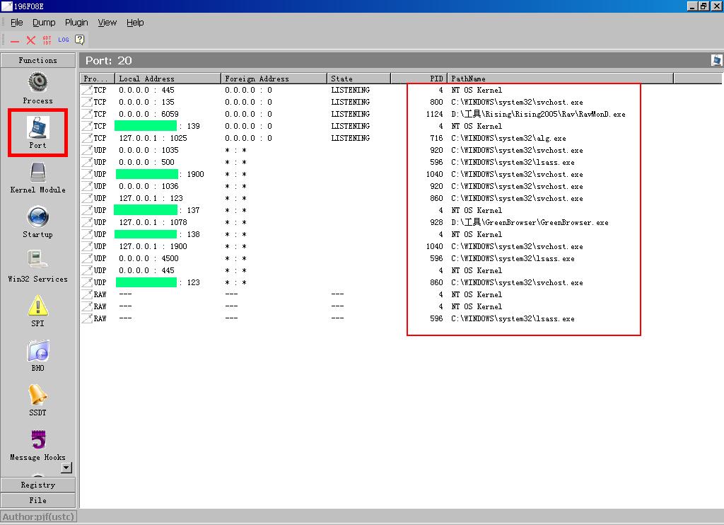 因此要明确到底是什么程序在监听。可以用“防火墙系统状态功能”或者“Icesword”的port确定监听程序,以明确监听端口的程序。