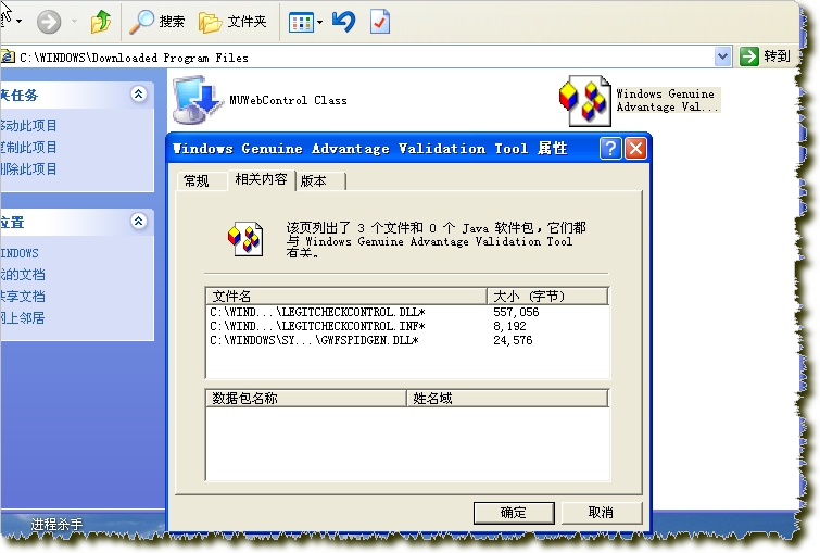 我装过几次正版验证补丁,好像也装过组件。 你看一下图,不知你的是否和我的相同?