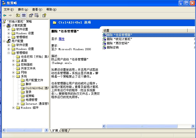 用ctrl alt del 调用任务管理器时