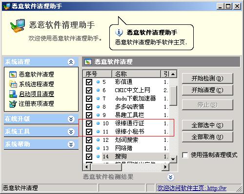 现在是(恶意软件清理助手),然后进"安全模式"杀流氓!
