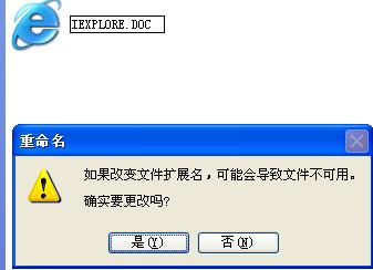 重命名文件时出现提示:"如果改变文件扩展名,可能导致文件不可用。确实要更改吗?",按“是”后该文件的图形就变了,如果要打开它,必须选择其使用程序。