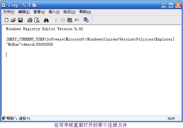 将该文件保存为run.reg文件,双击该文件,重启电脑