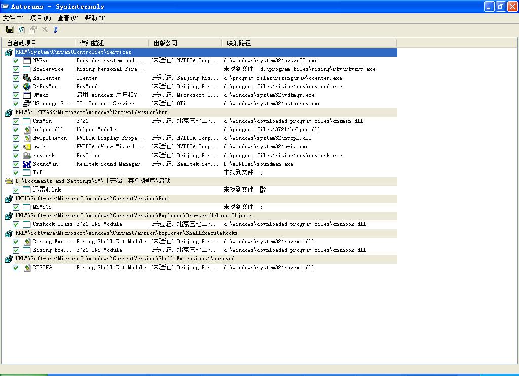 O4 - 启动项HKLM\\Run: [NvCplDaemon] RUNDLL32.EXE D:\WINDOWS\System32\NvCpl.dll,NvStartup