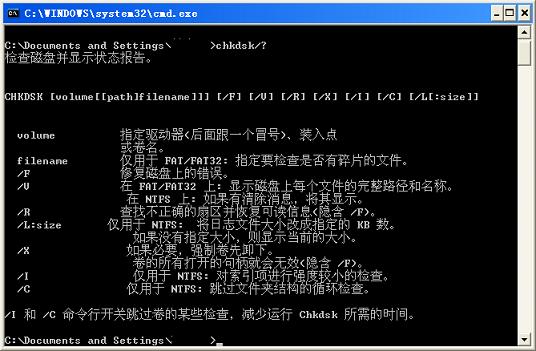 具体参数 查看 chkdsk/?