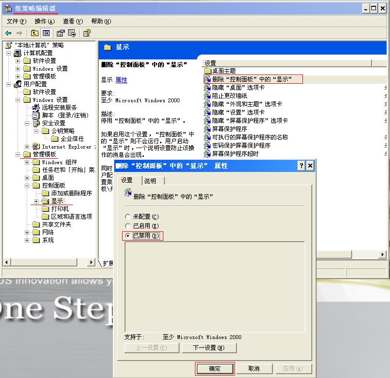 在桌面上点右键,然后点属性,弹出系统管理员禁止使用“显示”控制面板。改不了桌面了。